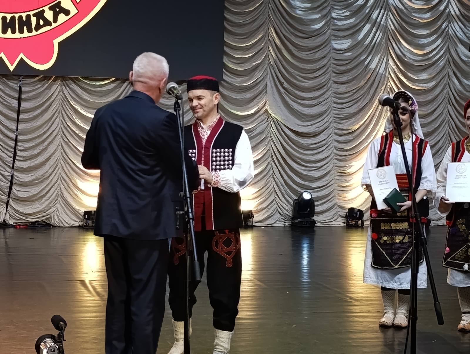 Овом приликом Лонић је уручио признања директору Зорану Петровићу, Магдалени Попов и Игору Попову. Магдалена Попов већ деценију води уметнички рад ансамбла, док Игор Попов, васпитач специјалиста за традиционалну игру, са ансамблима ради од 1999. године.