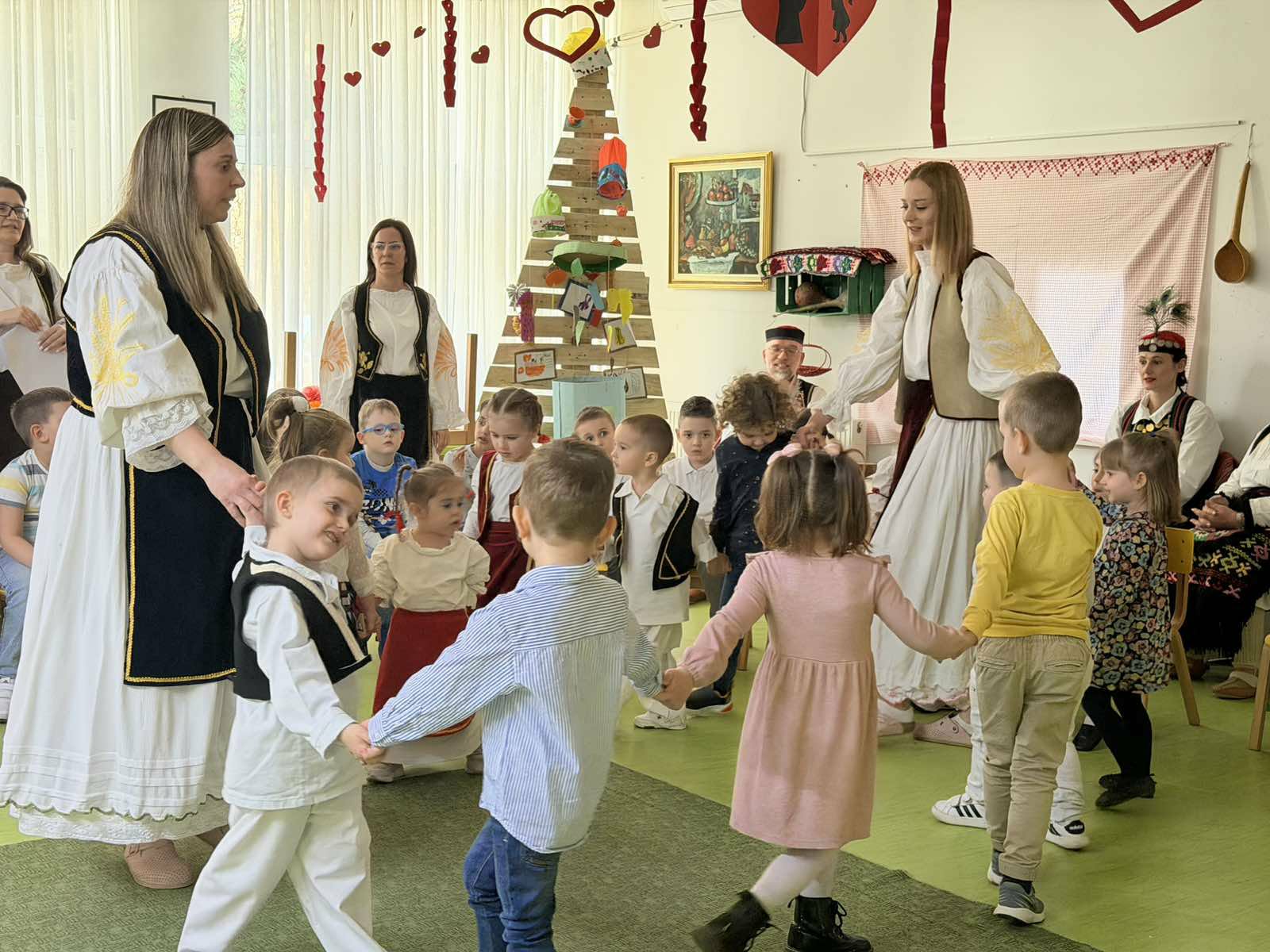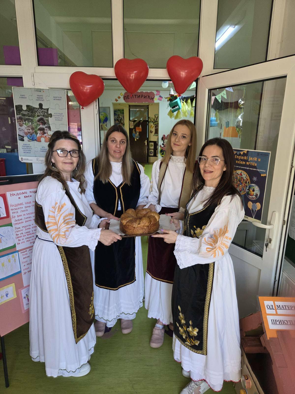 -Прело симболизује место окупљања, песме, дружења и рада. Оно је имало и друштвену  и забавну улогу, било је омиљена свуда, на селу и у граду. На прелу се радило, певало, веселило, играло, а старији људи препричавали су своје доживљаје и догађаје из историје српског народа и тако учили млађе. Да наше окупљање буде потпуно помогли су нам чувари традиције, чланови КУД-а „Петар Кочић“, који су били наши драги гости и који су све присутне маме, баке, тате и остале песмом и игром вратили у нека давна времена – истакла је васпитачица Александра Манџуковић, која је програм осмислила заједно са колегиницама Соњом Карановић,  Соњом Ћирић и Иваном Остојић.