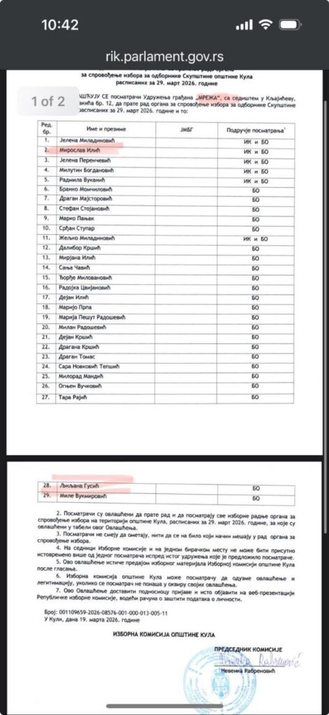 Удружење грађана „САМО ДА ВИДИМ“, са седиштем у Новом Саду, Ул. Браће Рибникара 63, пријавило је као посматрача Миломира Јаћимовића. Ради се о блокадерском аутопревознику, који има преко 30 прекршајних пријава због кршења јавног реда и мира, и кршења саобраћајних правила, али поседује и кривични досије. Шта таква особа, без икаквог предзнања о правилима рада бирачког одбора, склона инцидентном понашању, уопште тражи у Кули на бирачким местима?