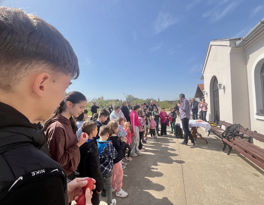 U porti hrama u Ruskom Selu, odmah nakon vaskršnje liturgije, održana je Tucanijada za decu – ali ne kao klasično takmičenje, već kao topao praznik zajedništva, radosti i povratka korenima.