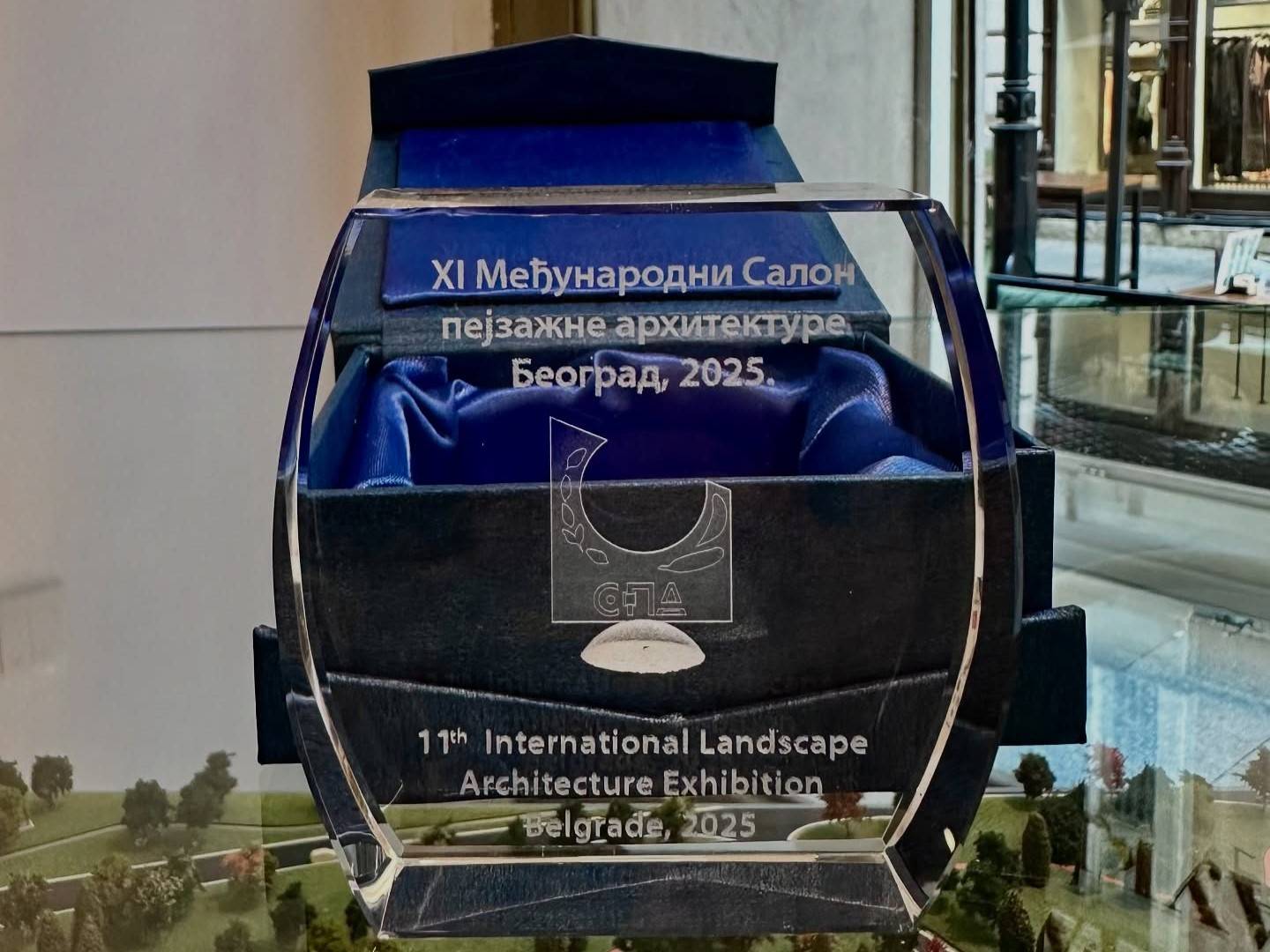 Признање им је уручено на свечаном отварању изложбе, у Галерији науке и технике САНУ у Београду. Салон пејзажне архитектуре организује Удружења пејзажних архитеката Србије, као бијеналну изложбу радова из области пејзажне архитектуре. Међународног је карактера и на њему су излагали професионалци и студенти из Србије, и из још 31 земље.