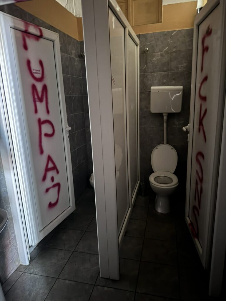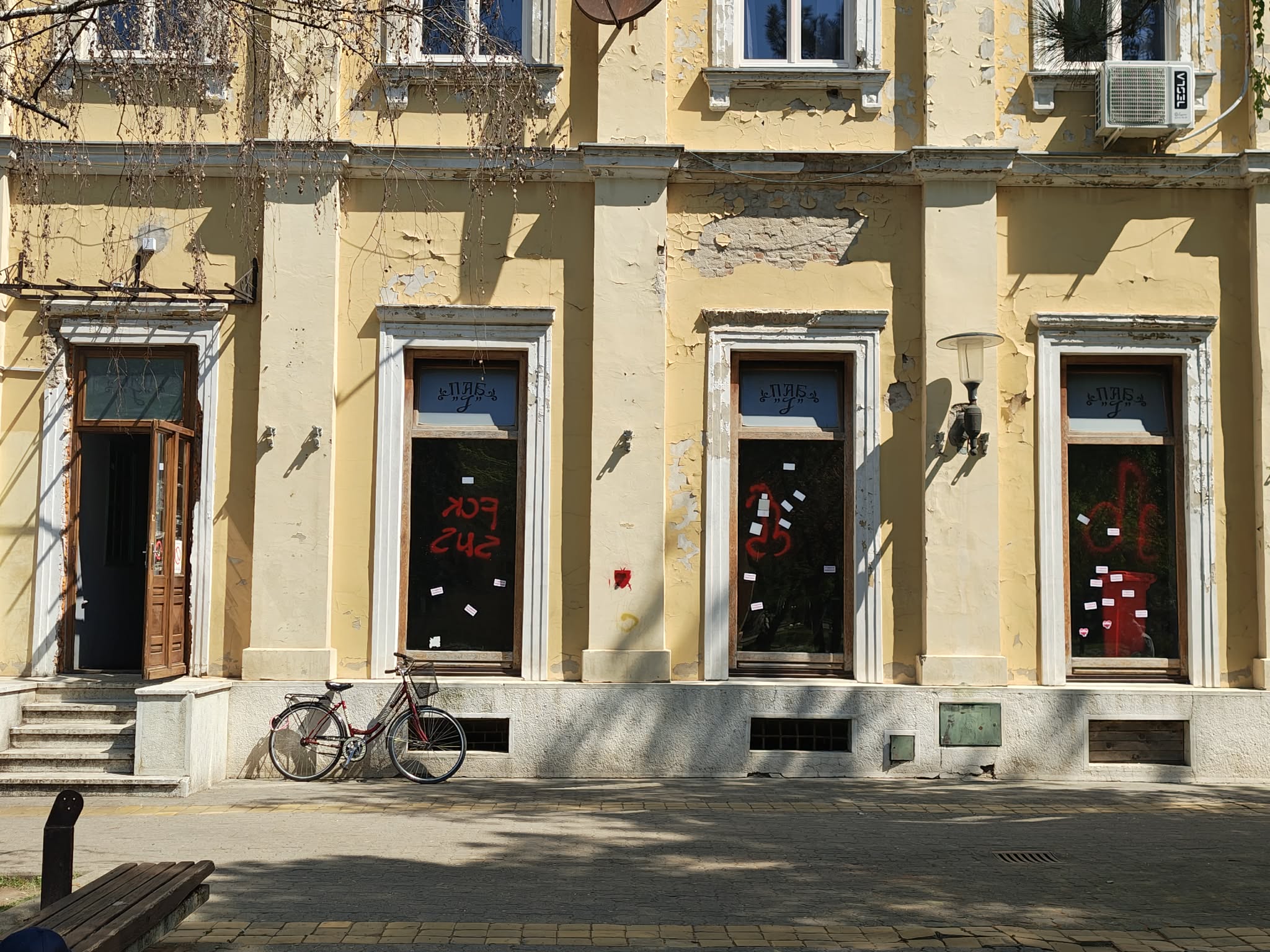 Оно што је остало иза дугогодишњег закупца градског локала на тргу, у ком се налазио Паб Ј, скандалозно је и срамотно! Објекат који је у власништву Града остао је у руинираном стању, са зидовима и излогом очигледно са јасном намером оскрнављеним графитима.